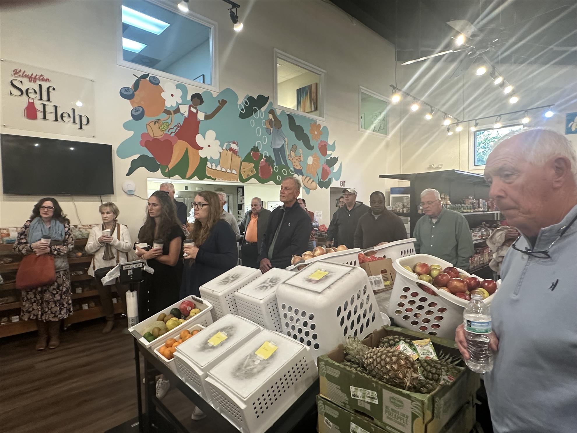 We heard about the vital work Bluffton Self Help performs in the community from Director of Development Carli Anselmi and CEO Courtney Hampson who led us on a tour of the facility where we saw the food available to local families, who were lining up for the day's distribution long before the 10 AM opening time. We also saw the warehouse where donations were waiting to be sorted and placed. The organization also has a clothing store nearby with a very eclectic selection for needy residents.