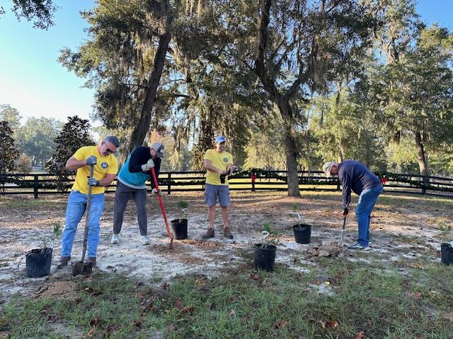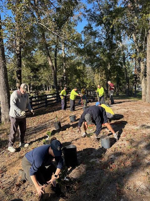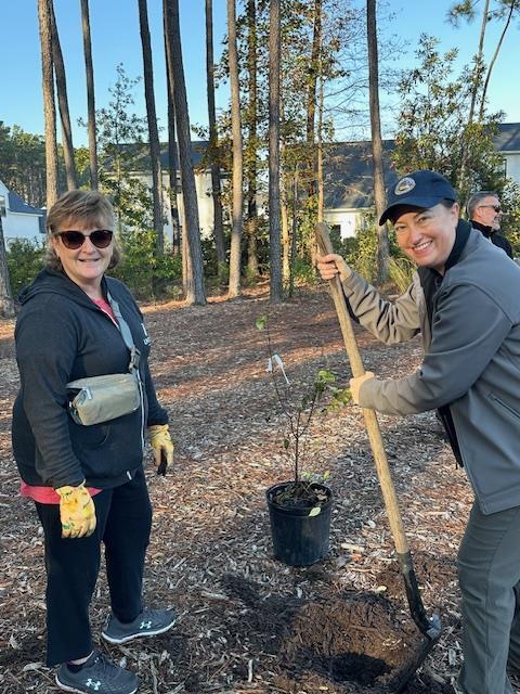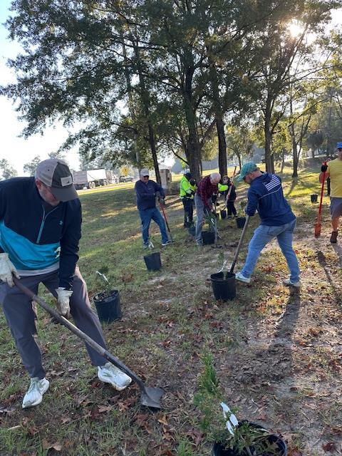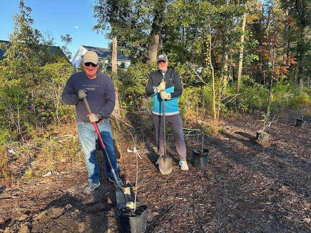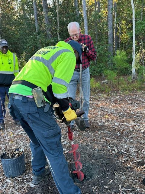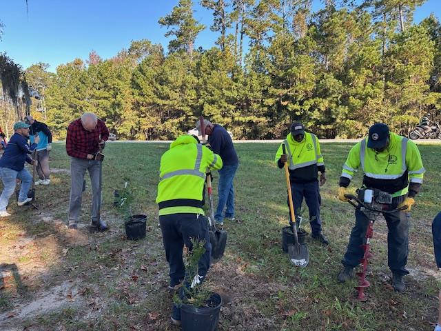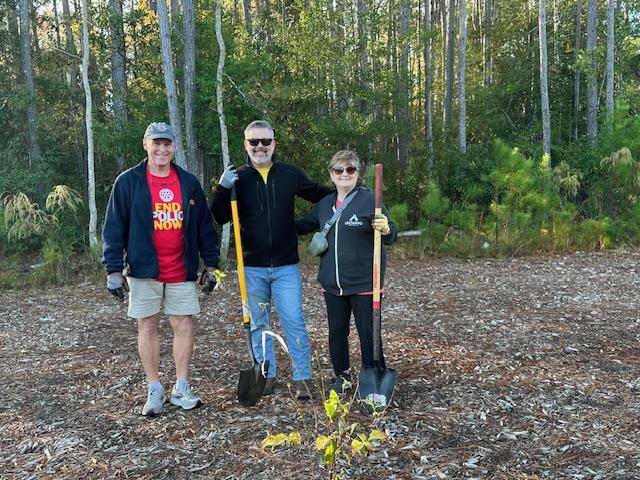 Members from the Bluffton Rotary Club and the Bluffton Evening Satellite Club teamed together with the Town of Bluffton Public Services Department to plant 128 small trees at the New Riverside Park on Friday, November 7.