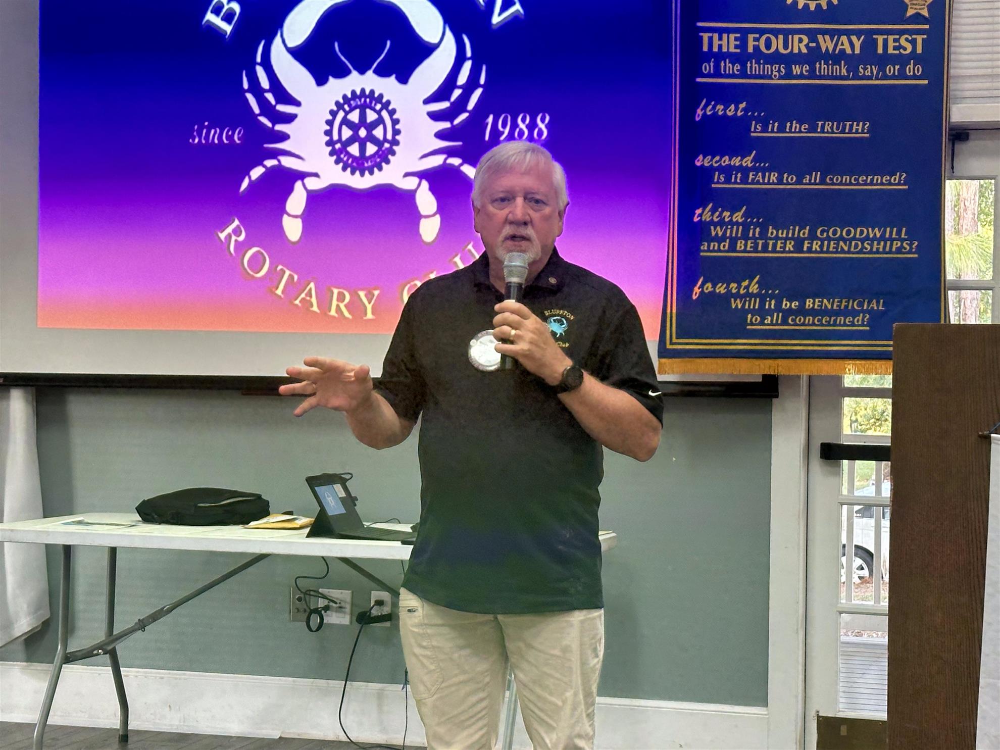 Dean Turner gave an informative talk on the history of Rotary, and on the scope of the Rotary Foundation. From it's founding in 1905 by Paul Harris in Chicago, Rotary has grown to over 46,00 clubs worldwide, with over 1.4 million members.