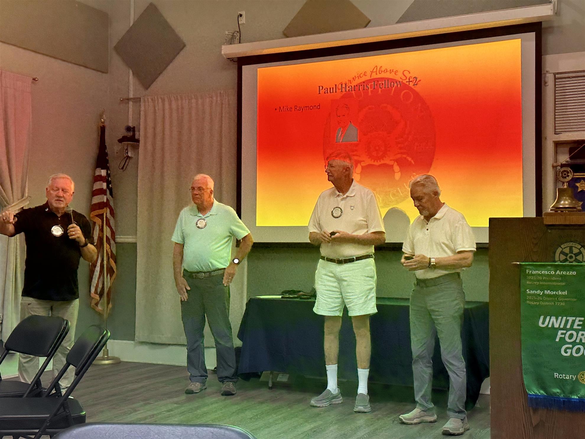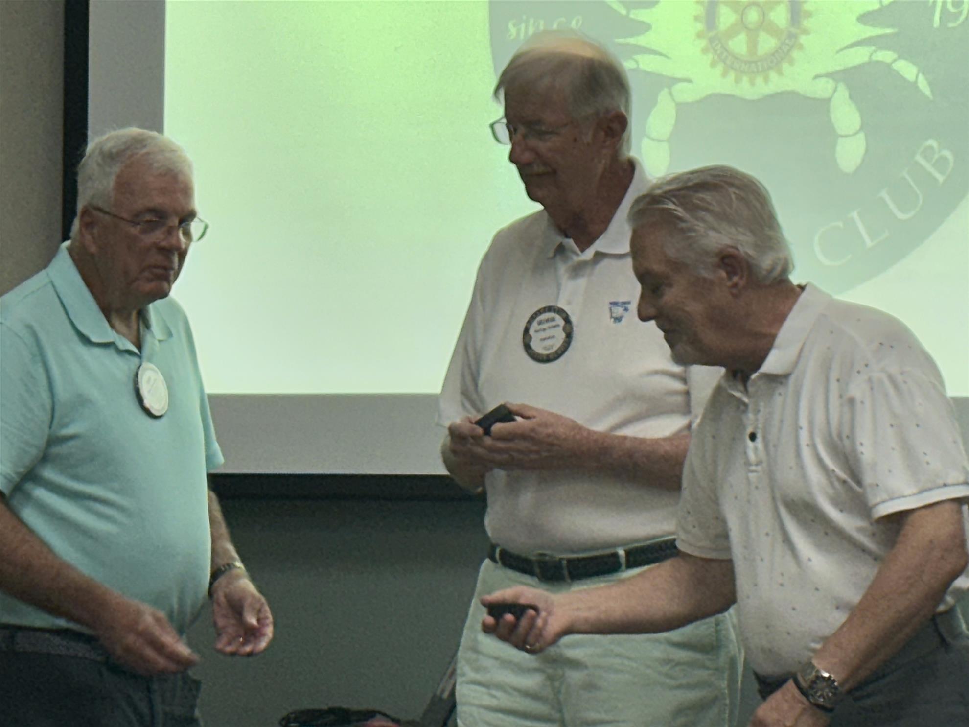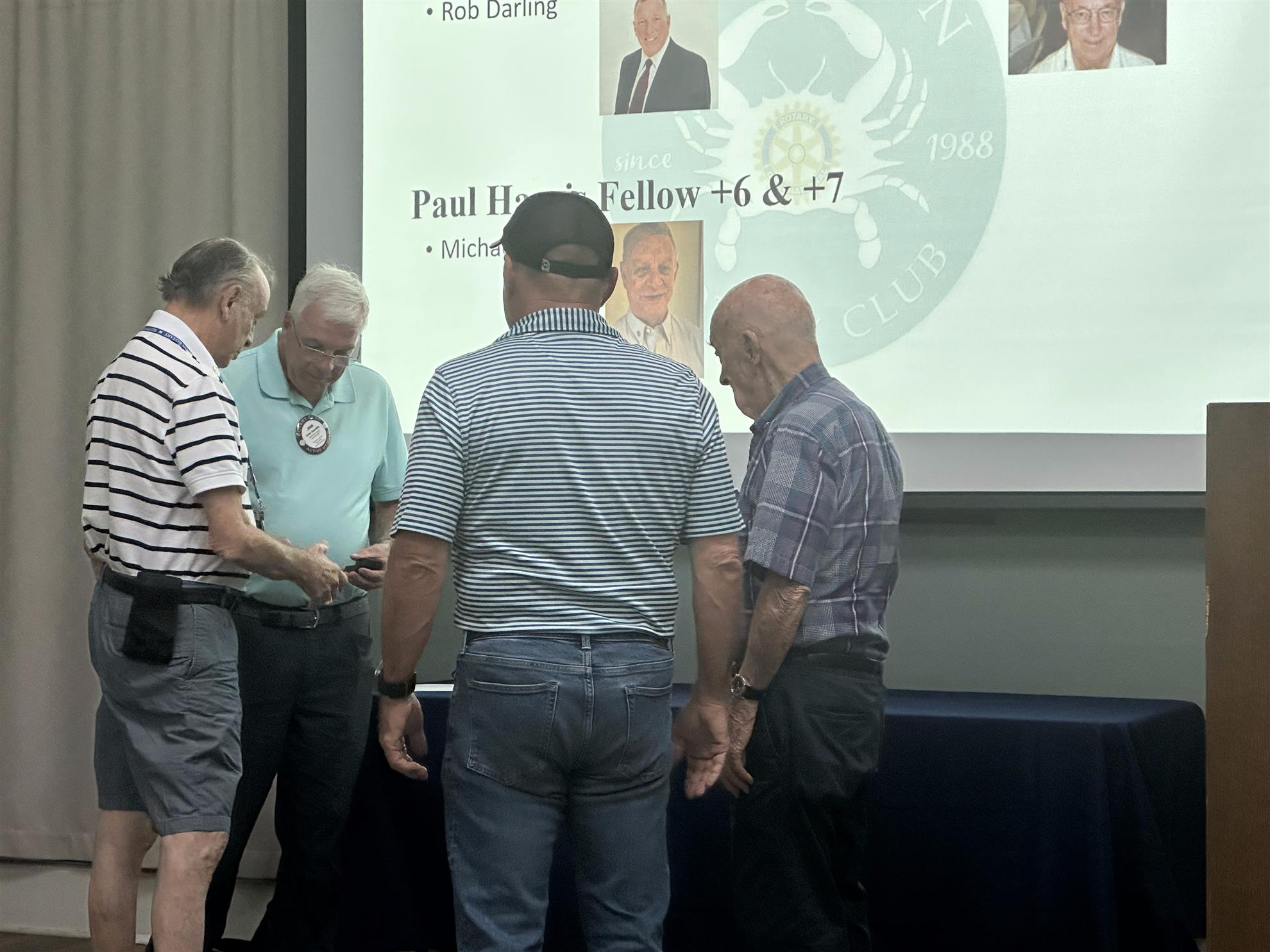 We had our normal business meeting on July 23. In addition we recognized the following Paul Harris Fellows: